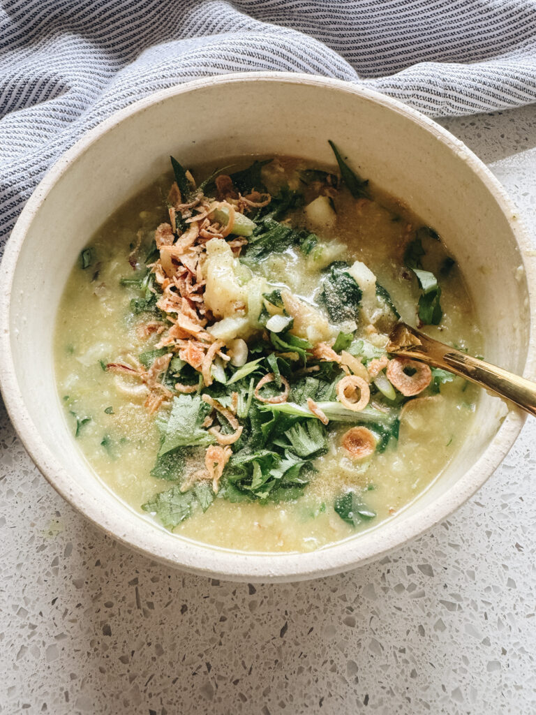 This is my go-to sick-day or almost-sick-day bowl: warm, hydrating, soothing, and packed with anti-inflammatory ingredients that support the immune system when it needs it most.